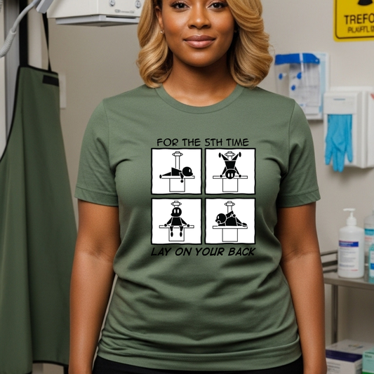 "I Said Lay on Your BACK!" X-ray Tech Comic Tee 😩🛏️
