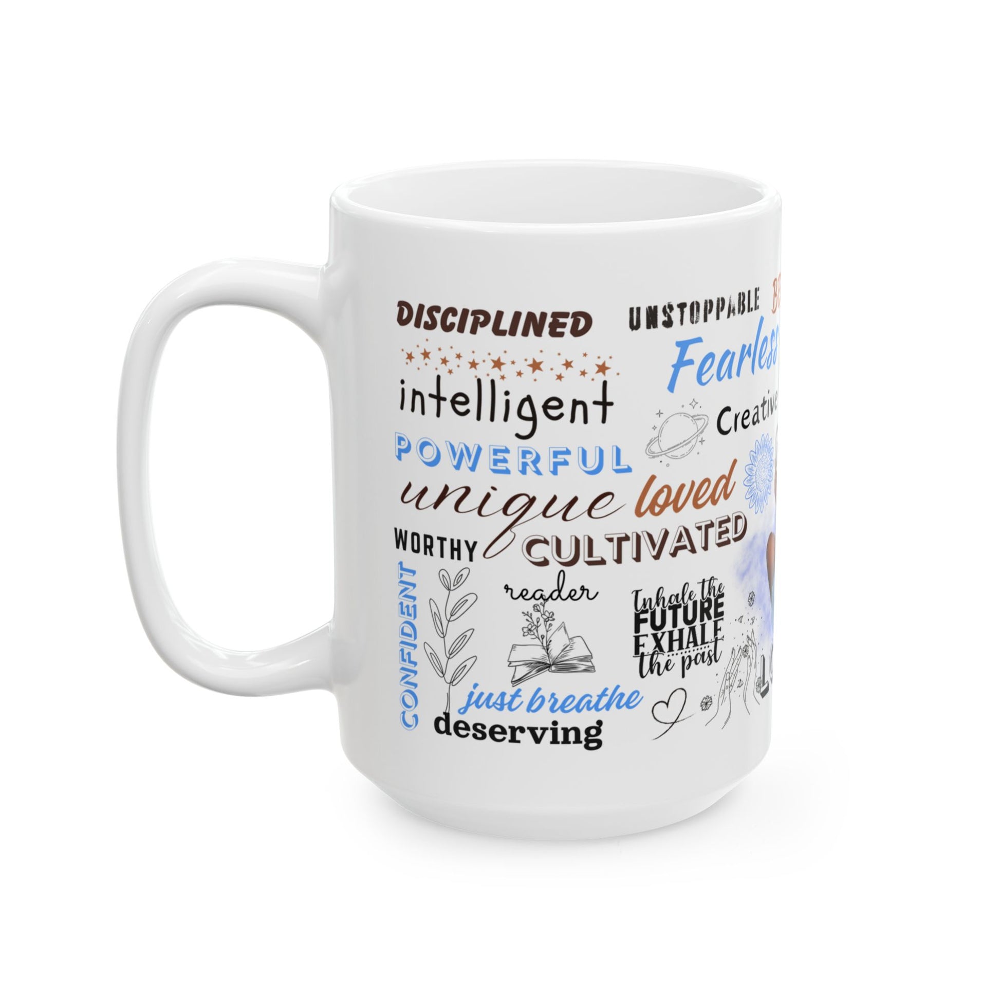 Discover the perfect blend of style and positivity with this beautifully designed ceramic mug. Ideal for your morning coffee, evening tea, or cozy hot chocolate, it radiates a vibe of empowerment and self-love.